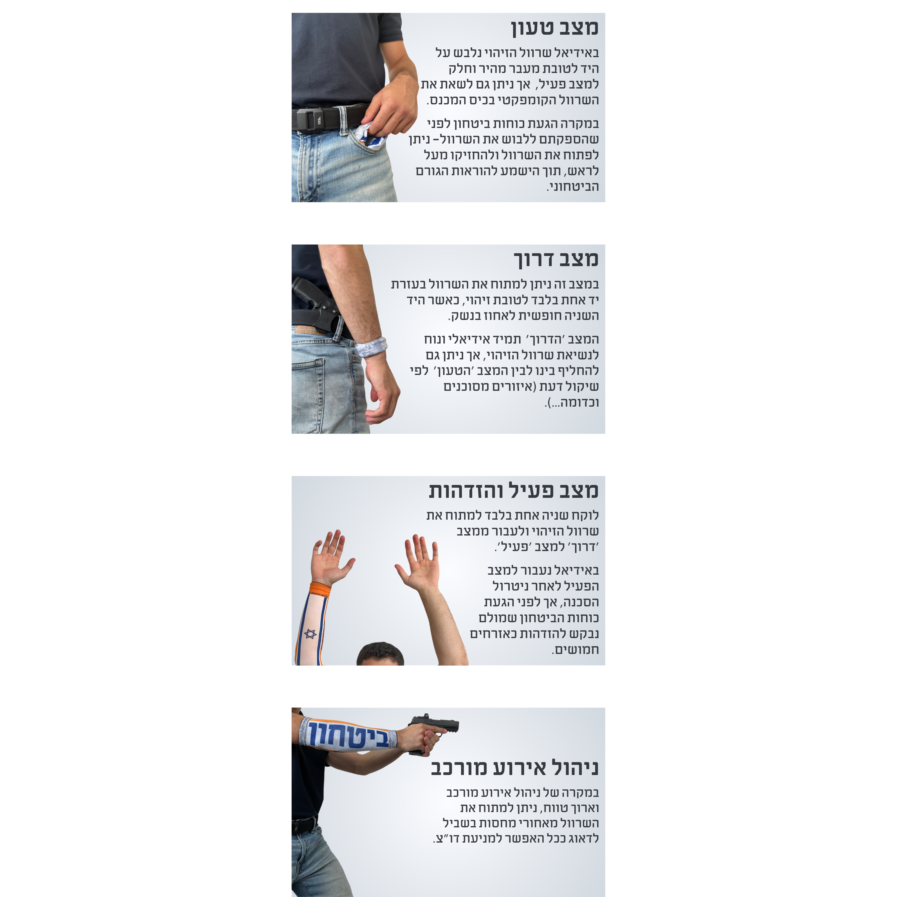 אופציה ב'- ניתן ללבוש מעיל מעל לשרוול הזיהוי כאשר הוא מתוח כך שבסך הכל צריך להפשיל את שרוול המעיל בשביל לחסוף את שרוול הזיהוי.